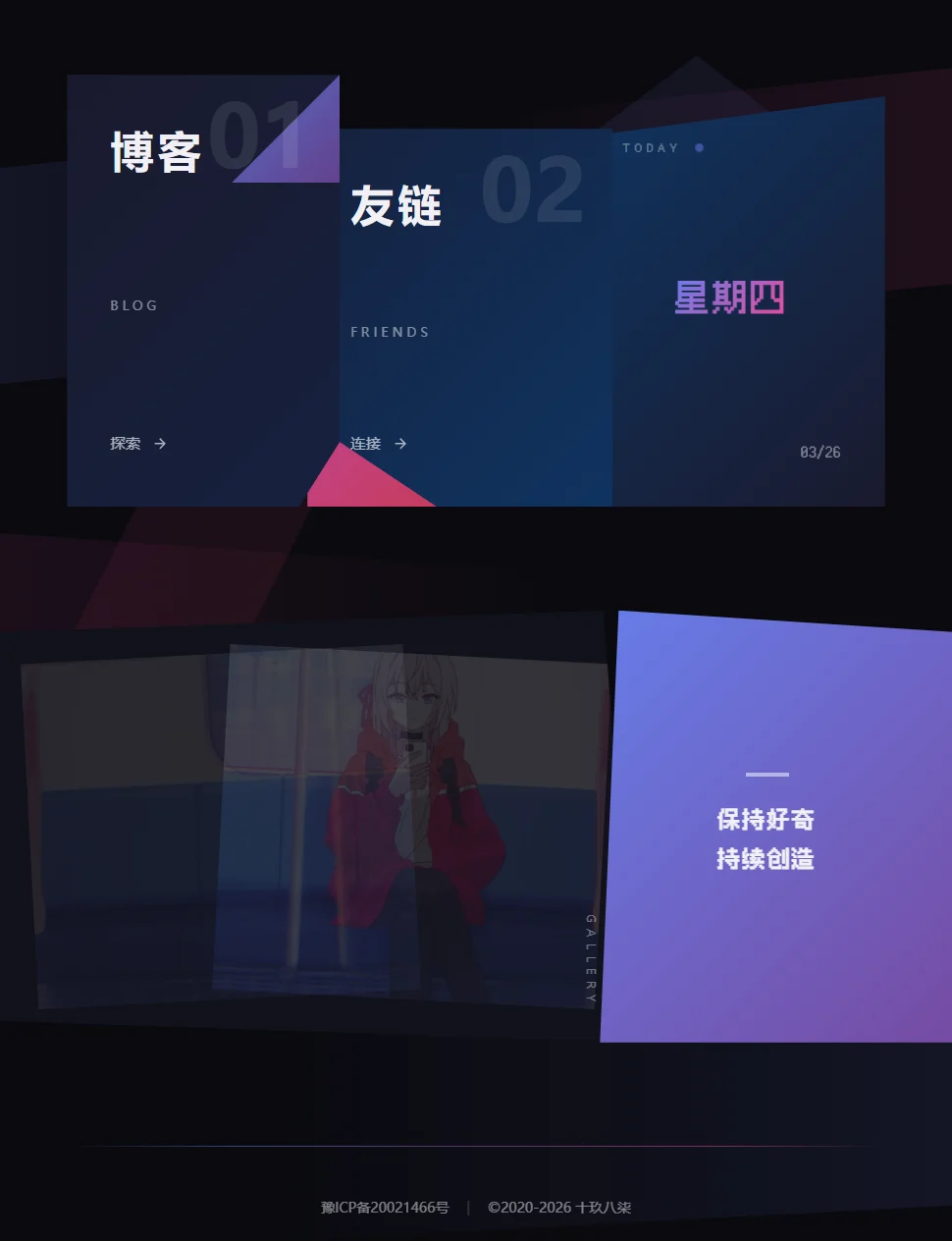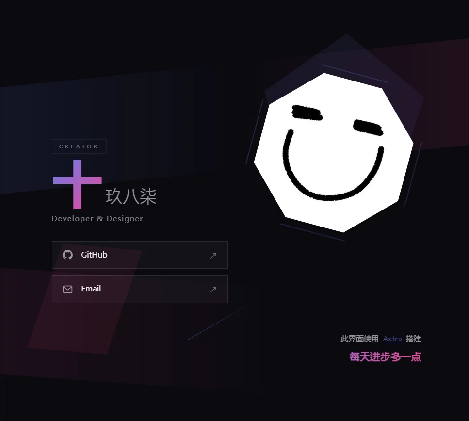 虽然目前看来由于我的博客项目功能页面较多,使用AI完全重构比较麻烦且费时间,但是我的个人主页只有单页,完全可以使用AI Agent实现重构。下面就是我使用glm5重构的效果: