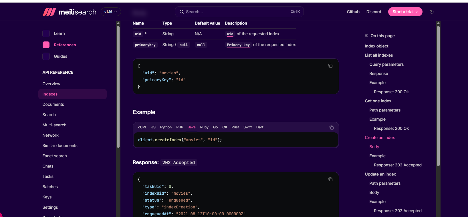 由于Meilisearch还没有官方的starter,所以只能通过Java SDK集成。